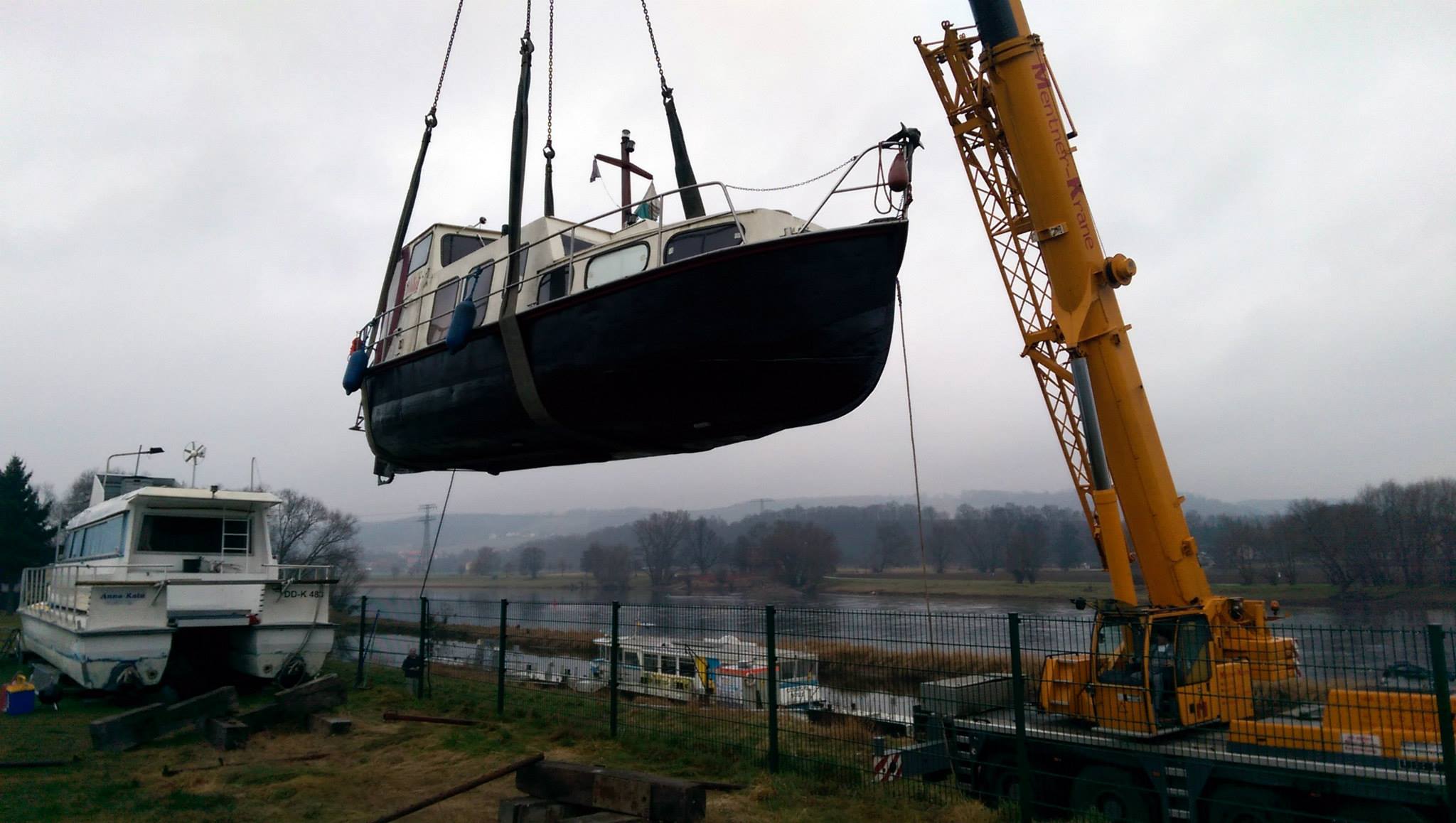 Ein Freund von uns entdeckte das Boot vor etwa fünf Jahren auf eBay und kaufte es. Zusammen mit ihm überführte ich es über etwa 700km über den Dortmund-Ems-Kanal, den Mittellandkanal und die Elbe nach Dresden. Diese Reise dauerte sieben Tage.